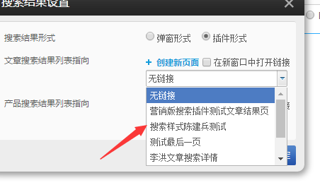 选择了插件形式之后,需要设置文章搜索列表结果和产品搜索结果列表的链接。